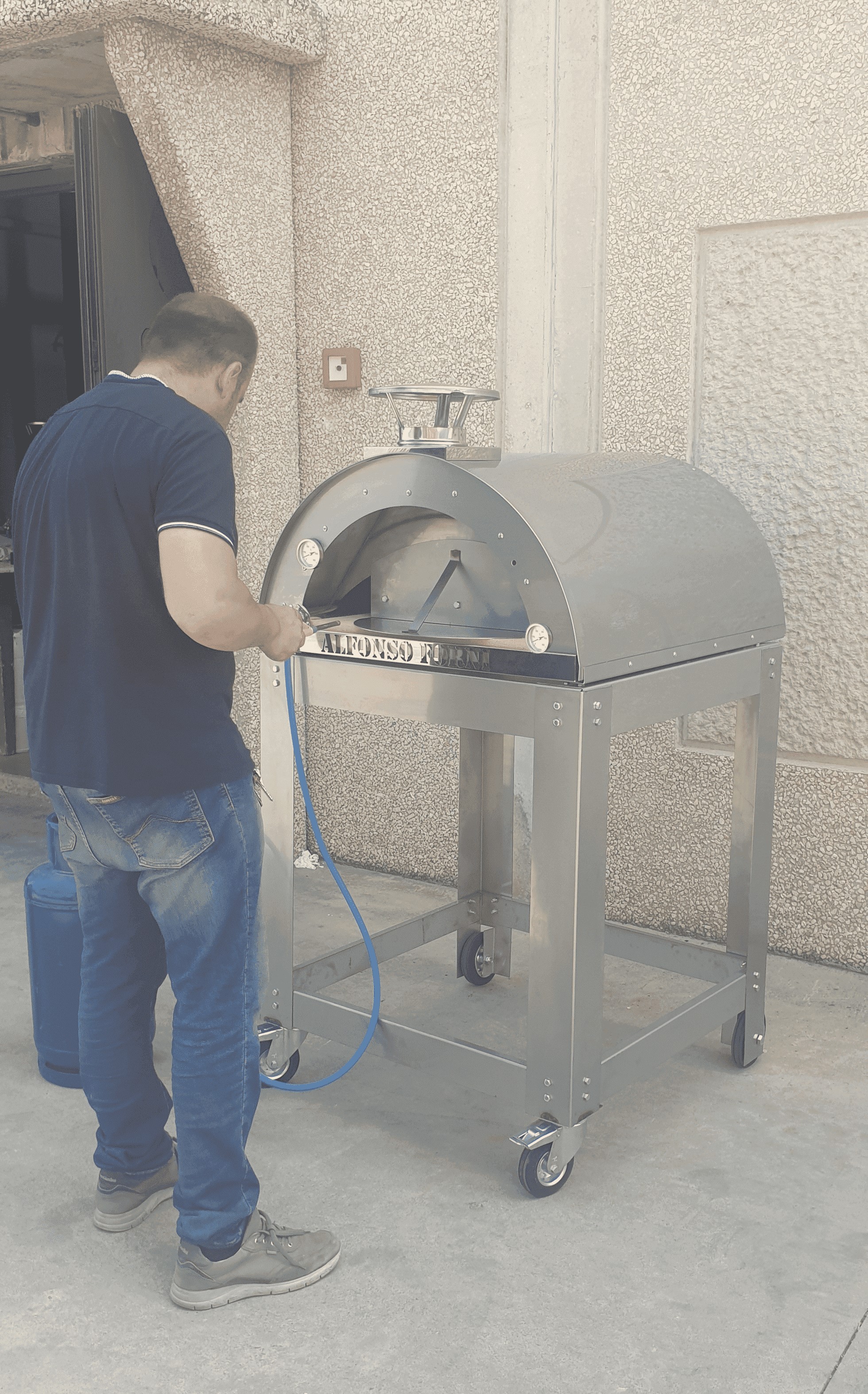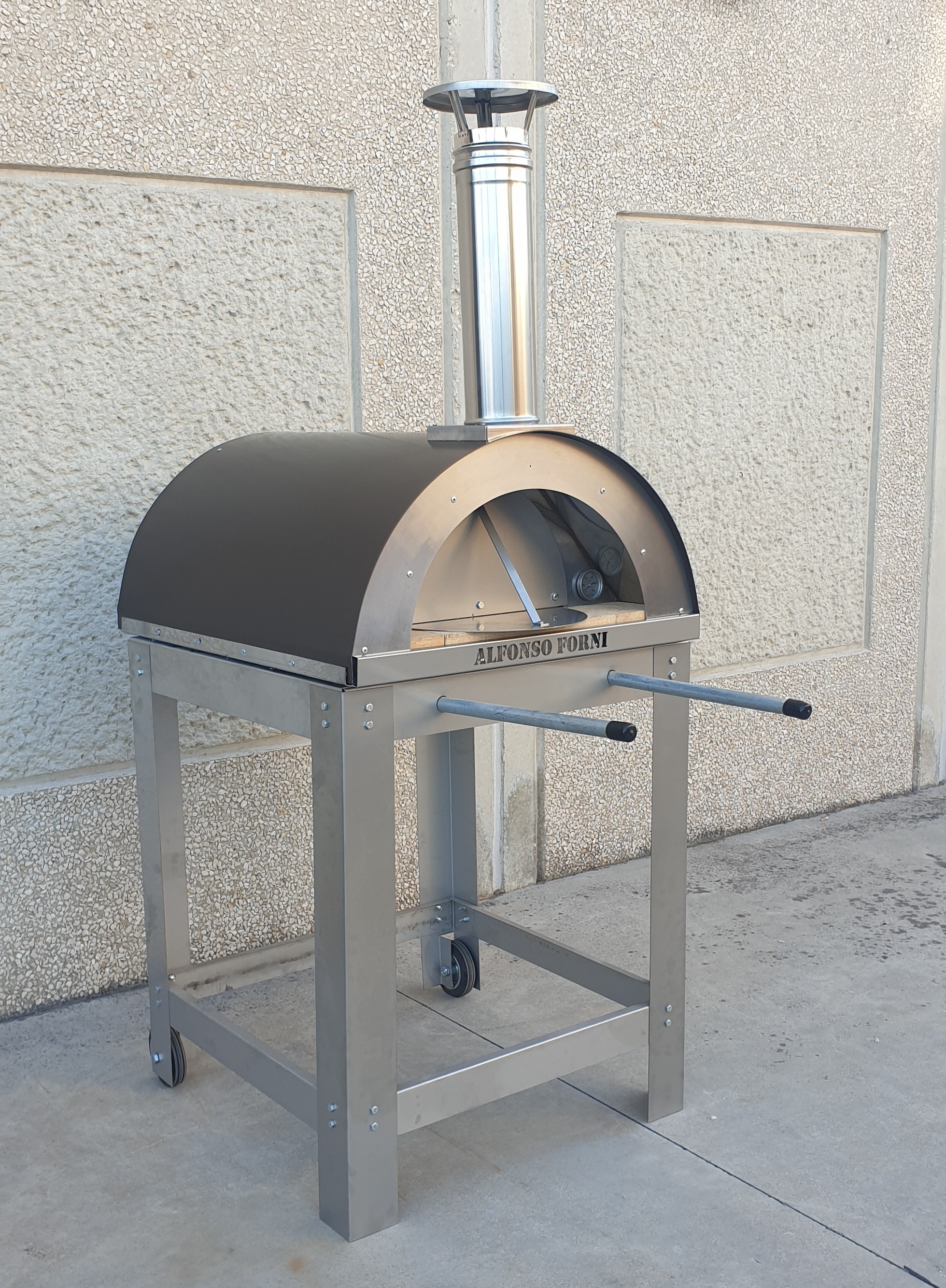 This trolley is made of Stainless Steel and is very practical and useful because it acts as a support for your "ALFONSO 4 PIZZE" wood-fired oven model!