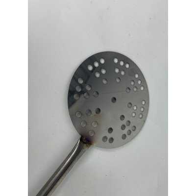 Round Pizza Turning Pole, Perforated Steel, With Wooden Handle.