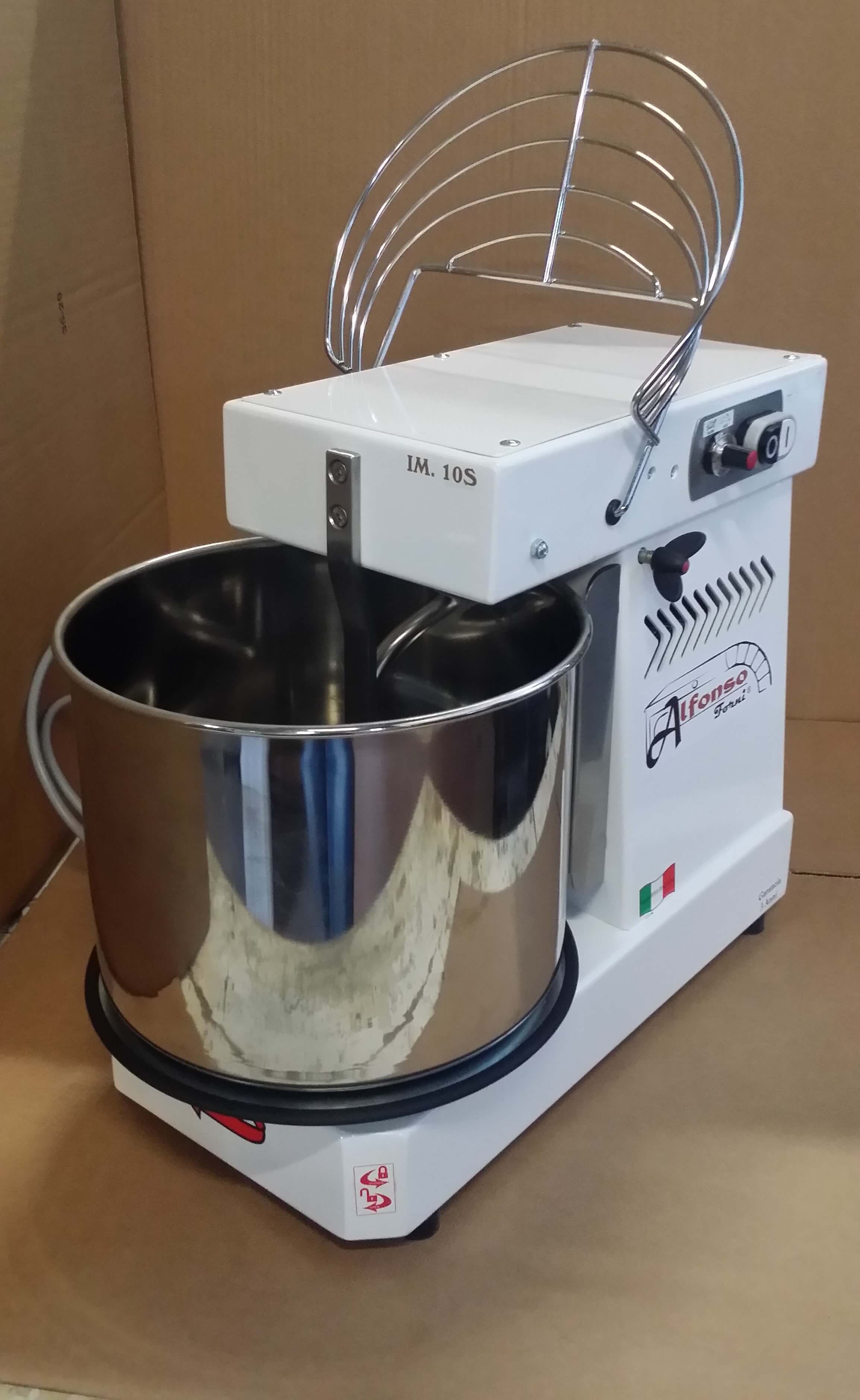 L'impastatrice da 10 Kg Alfonso forni, con spirale fissa ti da la possibilità di impastare fino a 10 kg d'impasto (7 kg di farina + 3,5 litri di acqua), con un impasto minimo di 500 gr.